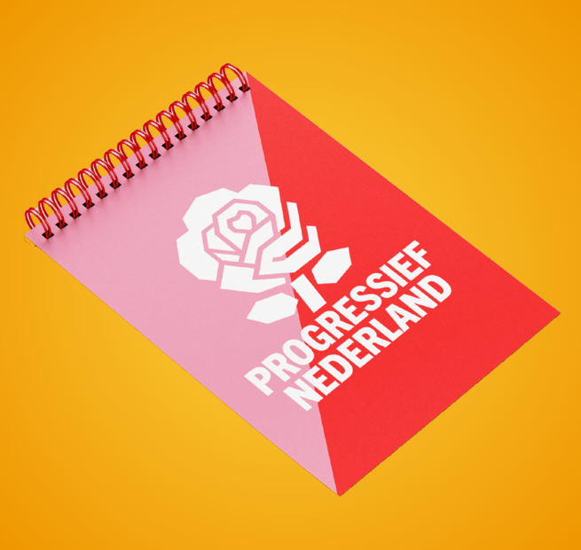 Samen met Progressief Nederland vertaalden we de nieuwe branding naar merchandise die meteen staat. Denk aan textiel en andere producten waarin de combinatie van kleuren en het nieuwe logo duidelijk terugkomt.